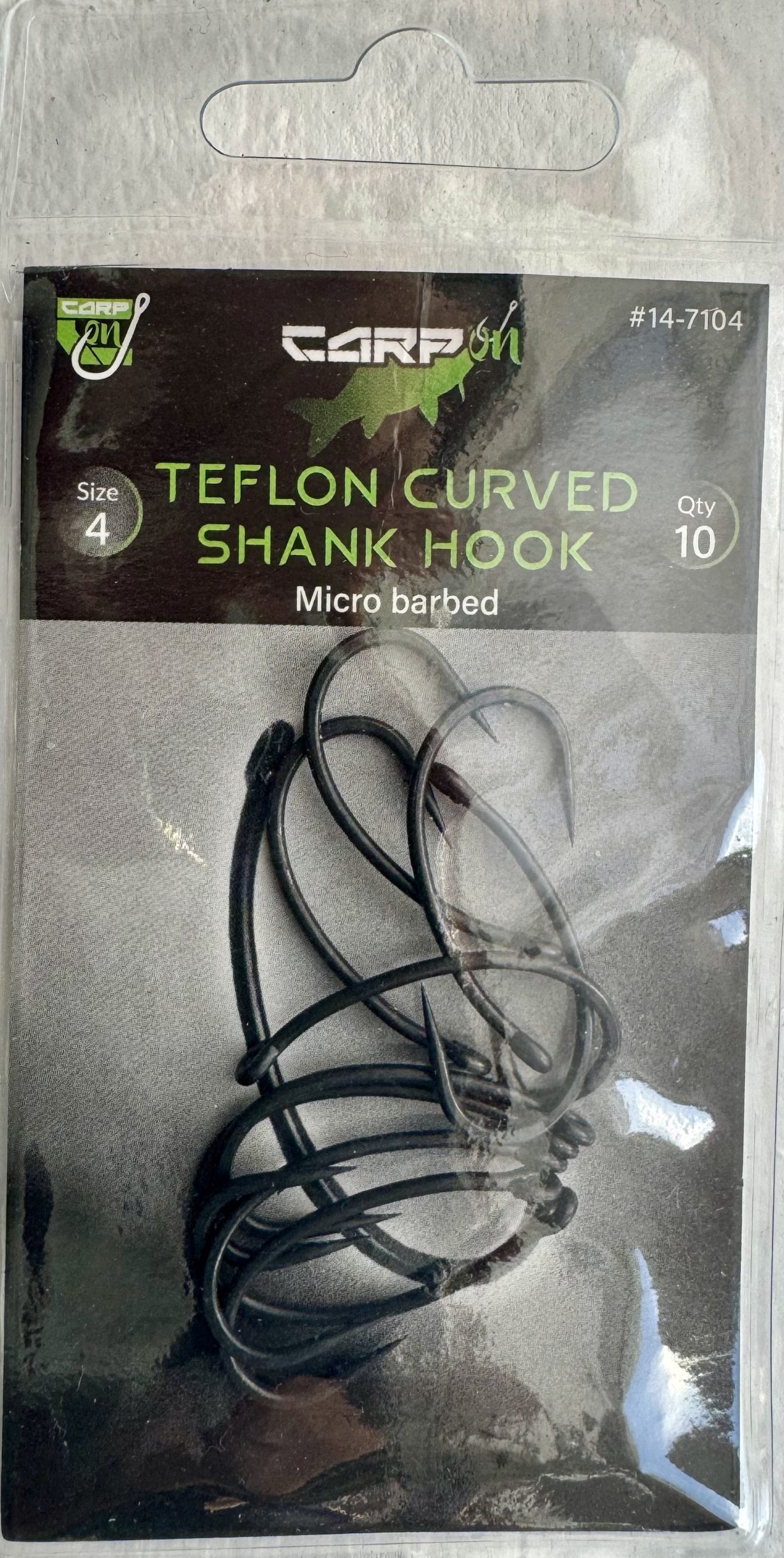 Carp On 14-7104 Size4 Teflon Curved Shank Hook Micro Barbed – 10 Hooks per Pack.