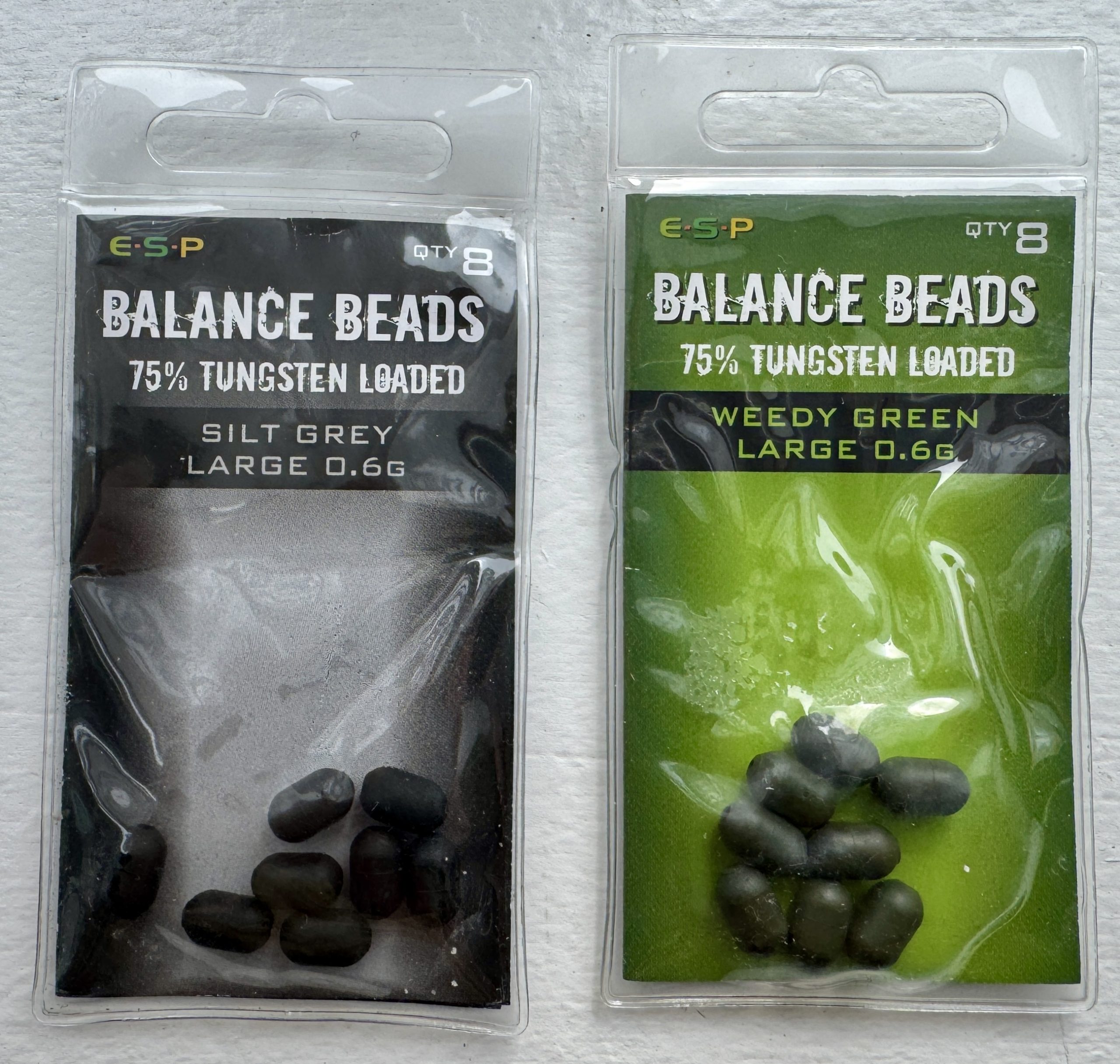 Designed as a very convenient alternative to tungsten putty, they provide a secure fit over the swivel knot or trapped on a short loop. Perfect as a counterbalance on Ronnie rig booms and on the hook section of a hinge rig. The beads need to be pierced with a splicing needle or fine bait needle then threaded onto the link and pushed over the swivel or loop knot.