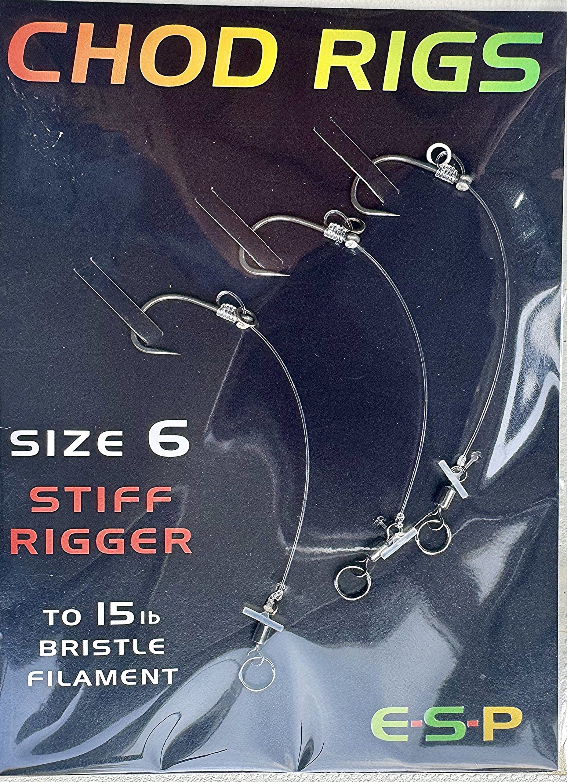 ESP Chod Rigs Sz6 Barbed Stiff Rigger to 15lb Bristle Filament.