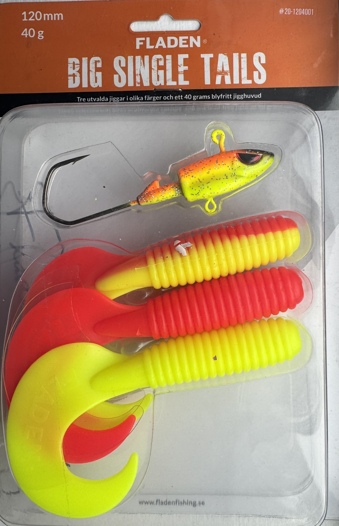 Big single tails are fantastic lures for many big predators in both salt and fresh water. You can either fish them with the streamline shaped jighead or fish them above your pilk on a single hook.