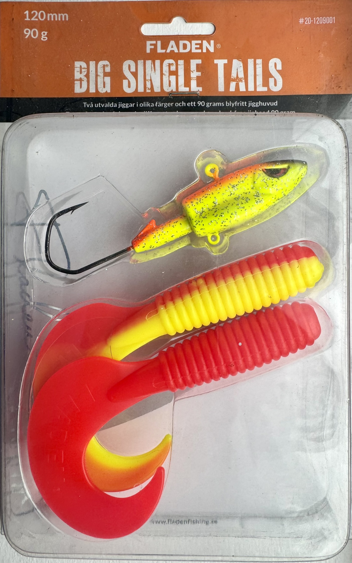 Big single tails are fantastic lures for many big predators in both salt and fresh water. You can either fish them with the streamline shaped jighead or fish them above your pilk on a single hook.