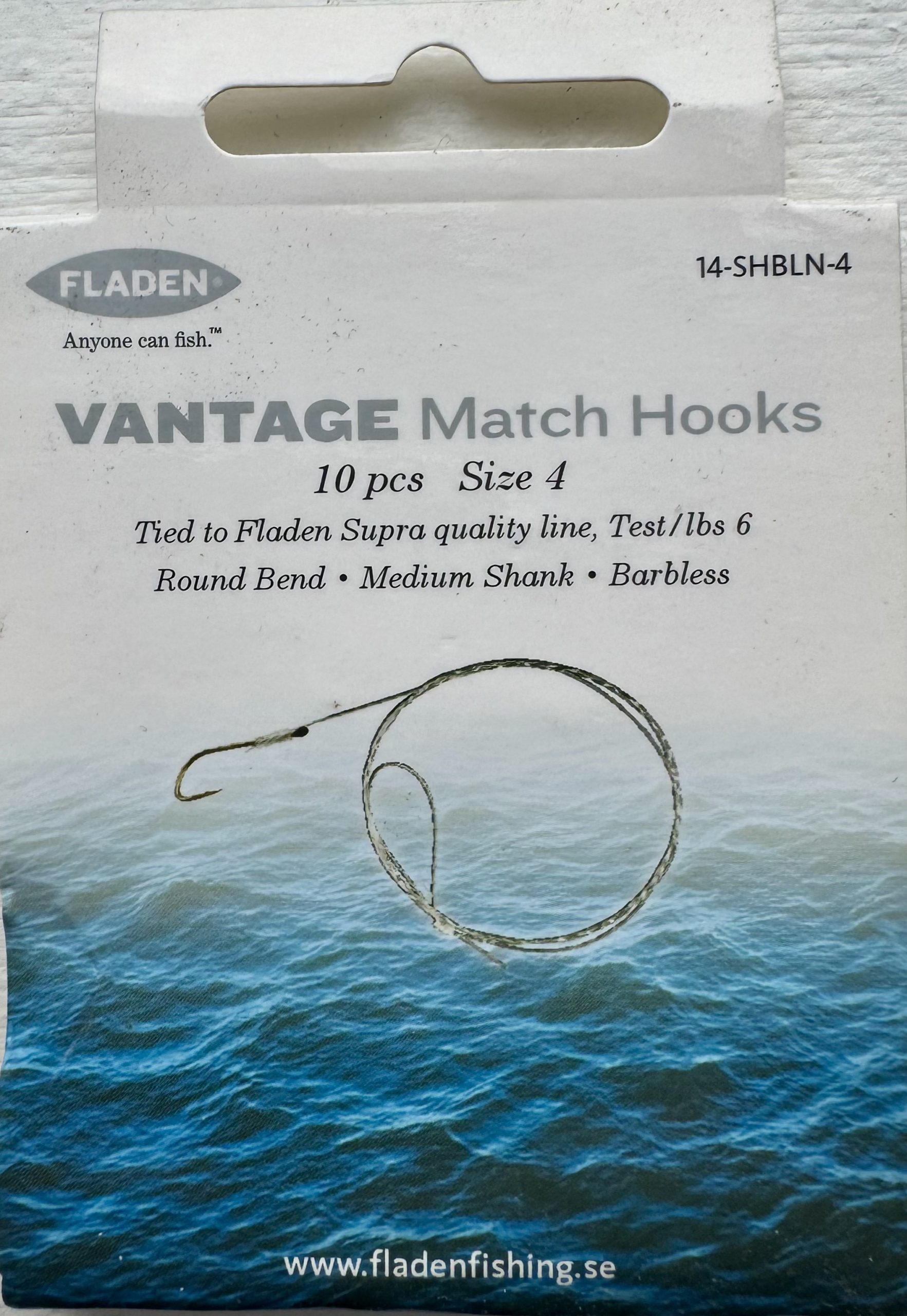 Fladen Vantage Match Hooks Size4 BARBLESS Tied to Fladen Supra Quality Line 6lbs/test.