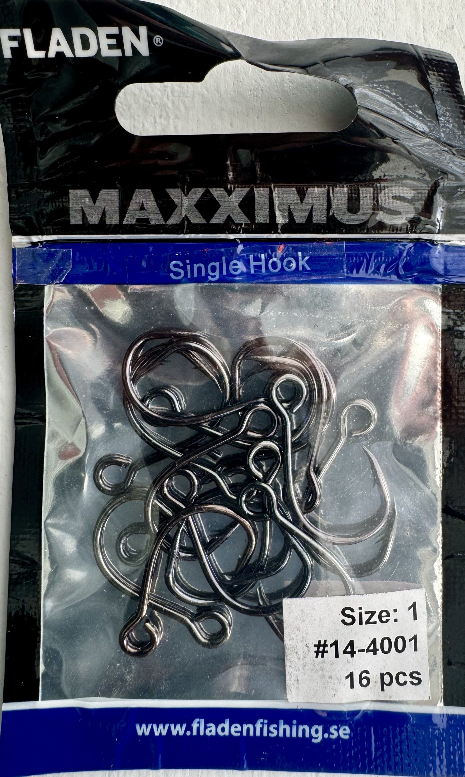 Fladen Maxximus Black Nickel Inline Single Replacement Hooks size 1 16 per pack.