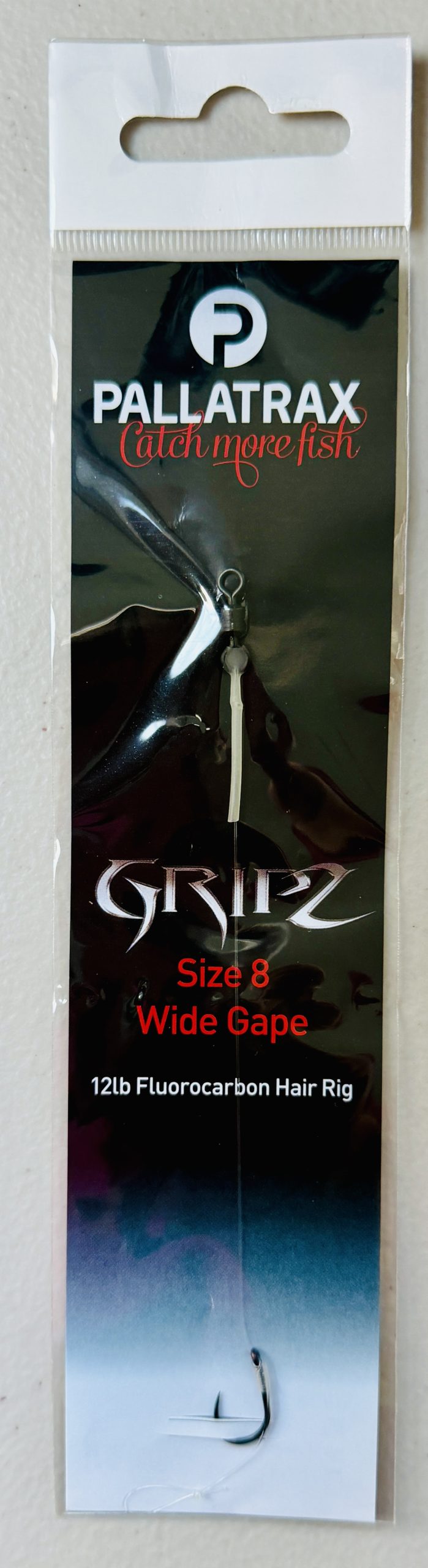 Gripz Wide Gape Fluorocarbon – Pallatrax Gripz Fluorocarbon Hair Rig, available in size 6 or 8.