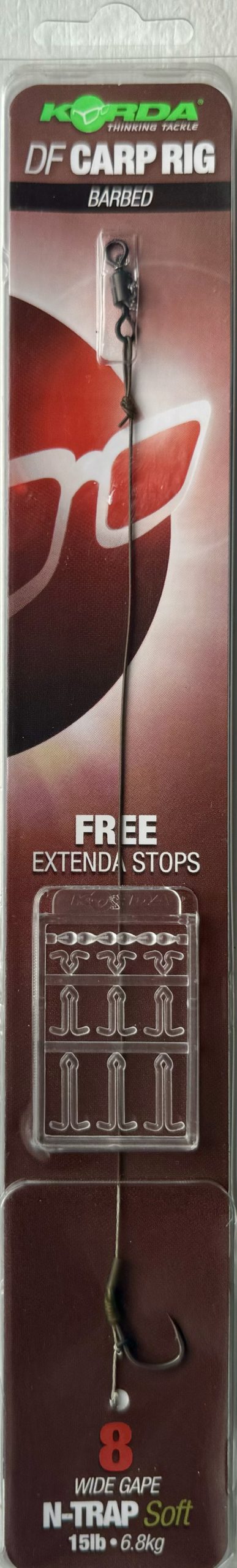Korda DF Carp Rig Barbed Sz8 Tied to N-Trap Soft Braid 15lb 6.8kg.