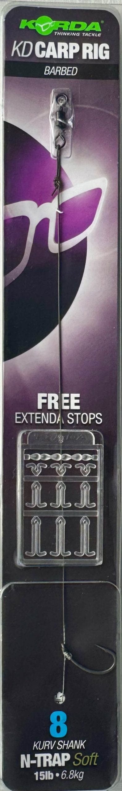 Korda KD Carp Rig Barbed Sz8 Ready Made Rig Tied to Soft N-Trap Coated Hooklink 15lb 6.8kg.